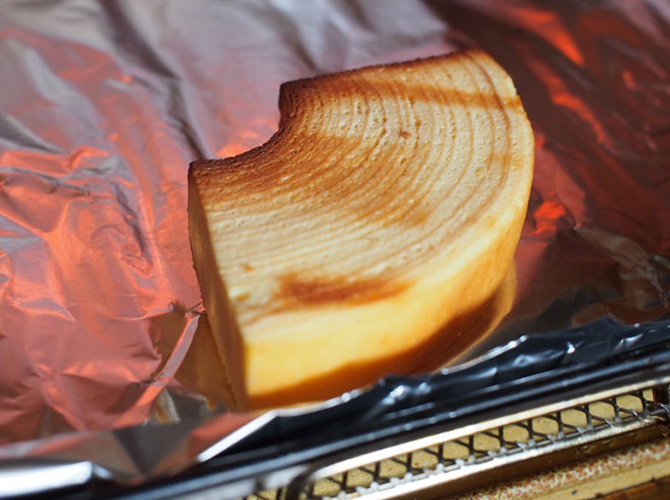 ・冷蔵庫でしっかり冷やしたバームをトースターで表面だけ焼くと、外側はふわっとあったかく、中はしっとりつめたい不思議な食感です。